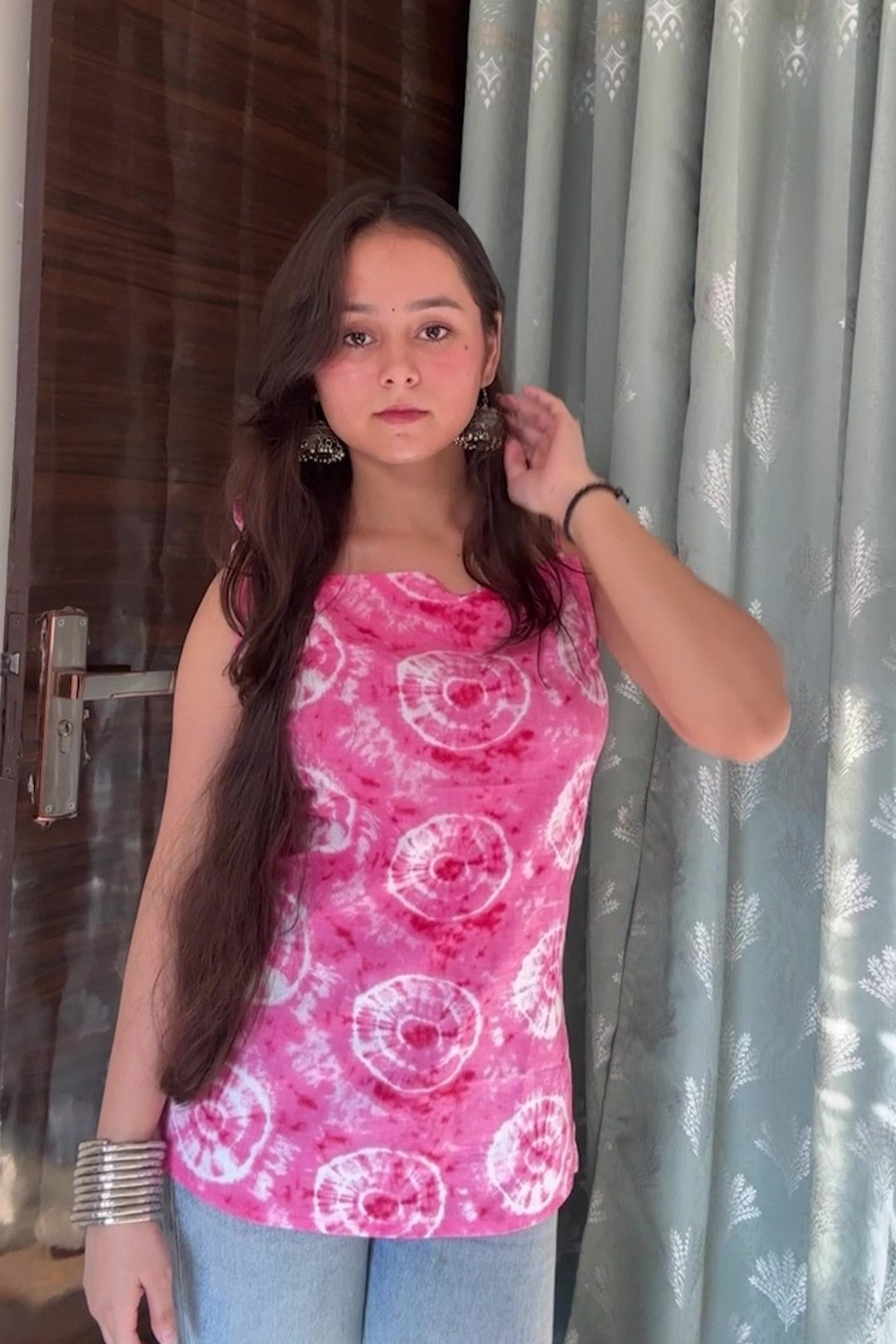 Aurelle – Pink Ombre Cotton Tie-Up Shoulder Top