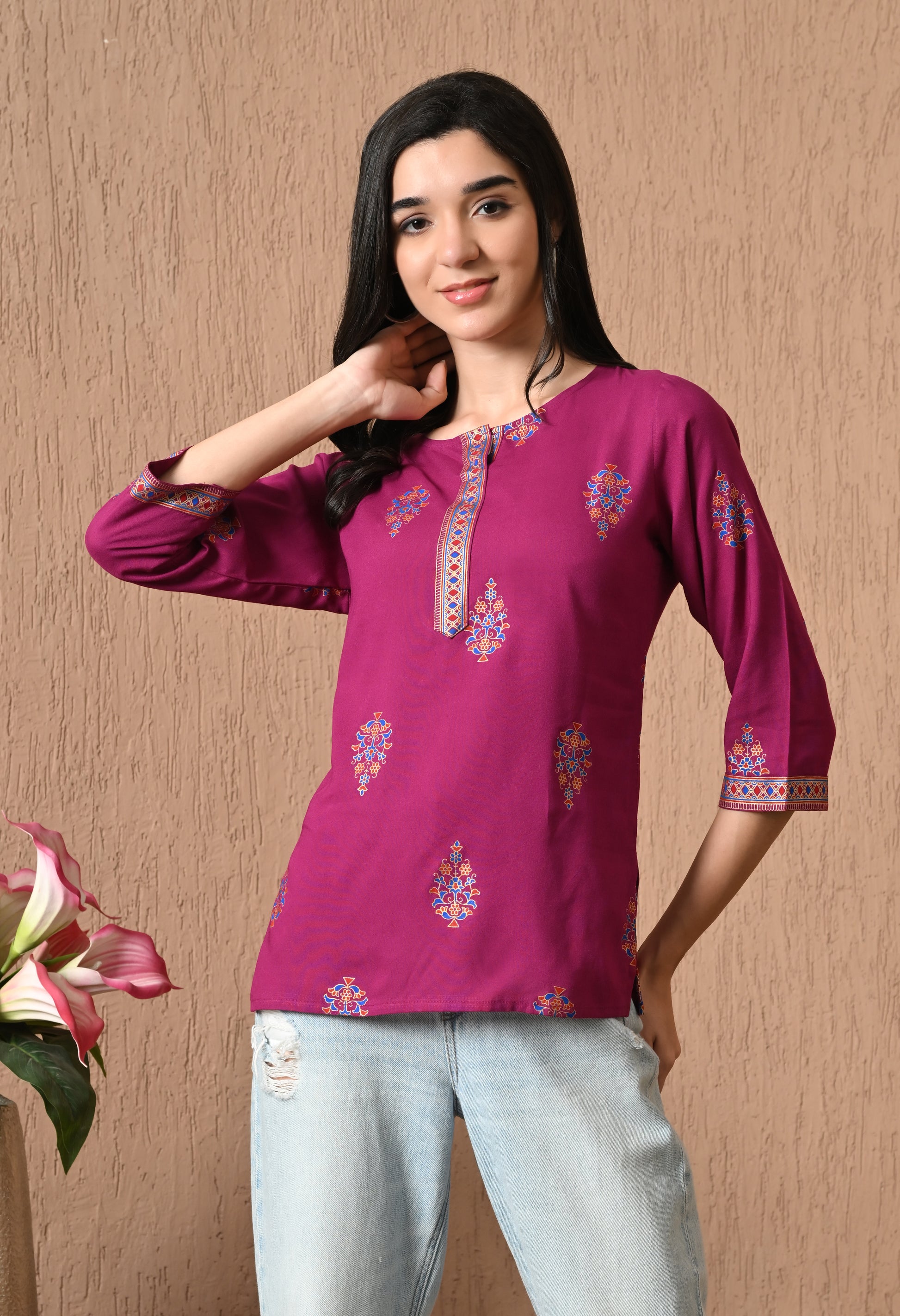 Noorika – Magenta Ethnic Motif Kurti